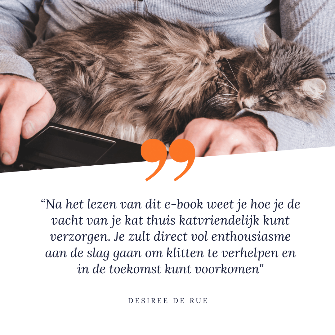Dit e-book is dé actuele gids waarin je leert om de vacht van jouw kat katvriendelijk te verzorgen. Boordevol waardevolle informatie die je móet weten als catlover en duidelijke video’s. Zodra je de aankoop hebt voltooid, ontvang je een mailtje met een overzicht van je aankoop. Klik op de blauwe link in de mail, en zo download je het e-book.