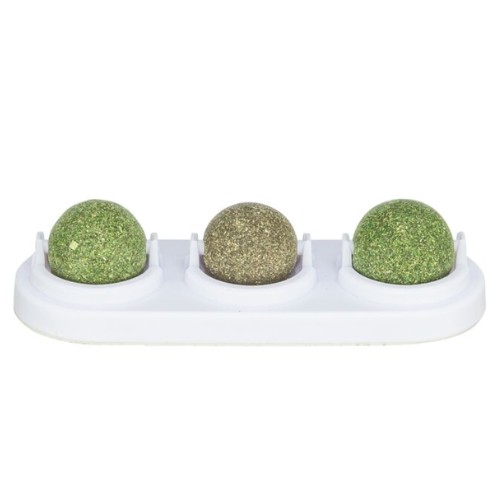 De Trixie speelbollen met houder hebben alle geurtjes waar je kat gek op is.