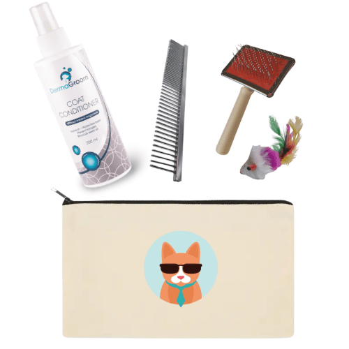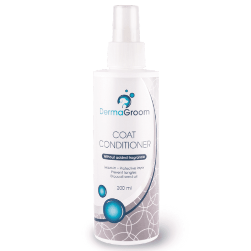 Verzorgingsset voor katten. Katten Vacht Conditioner van Dermagroom biedt diepe hydratatie en voeding voor alle kattenvachttypes, zonder uitspoelen. Deze katten conditioner maakt de vacht zacht, glanzend en beter beheersbaar, en voorkomt klitten tussen trim- of kambeurten door. Ook geschikt voor katten met een gevoelige huid dankzij de parfumvrije formule. Anti-klit spray voor katten. Katvriendelijke anti-klit vachtspray.